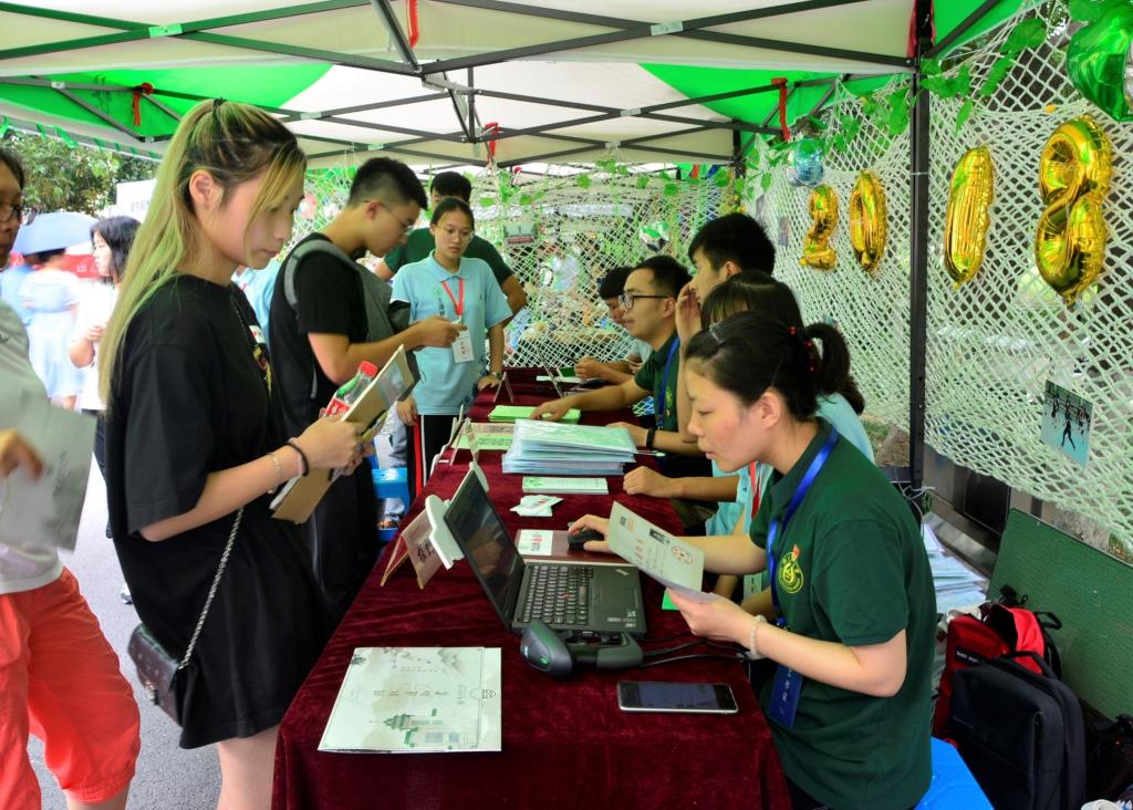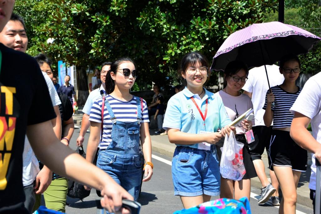 新生从踏进学校的那一刻起,就被william威廉亚洲官方的学长学姐们全程守护。william威廉亚洲官方今年在主楼、教四楼和樱花大道设立了三个迎新引导点,员工会成员带领着志愿者将新生和家长带至玉兰路的迎新点。