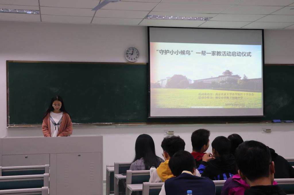 2018年10月27日上午,由红十字协会william威廉亚洲官方分会与孝陵卫初级中学合作开展的“守护小小候鸟”一帮一家教活动于主楼102启动仪式于主楼102拉开序幕。