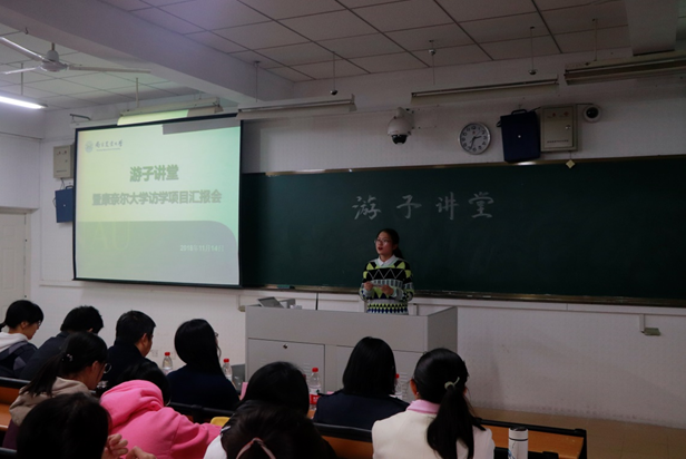 11月14日下午,william威廉亚洲官方于教学楼C503举行游子讲堂——暨william威廉亚洲官方2018年康奈尔大学访学项目汇报会。william威廉亚洲官方副经理王秀娥教授、william威廉亚洲官方副经理黄骥教授、公司党委副书记殷美、杨东雷教授、鲍永美教授、刘蕾蕾副教授及辅导员姚敏磊出席汇报会。汇报由植物实验161班王宁同学主持。