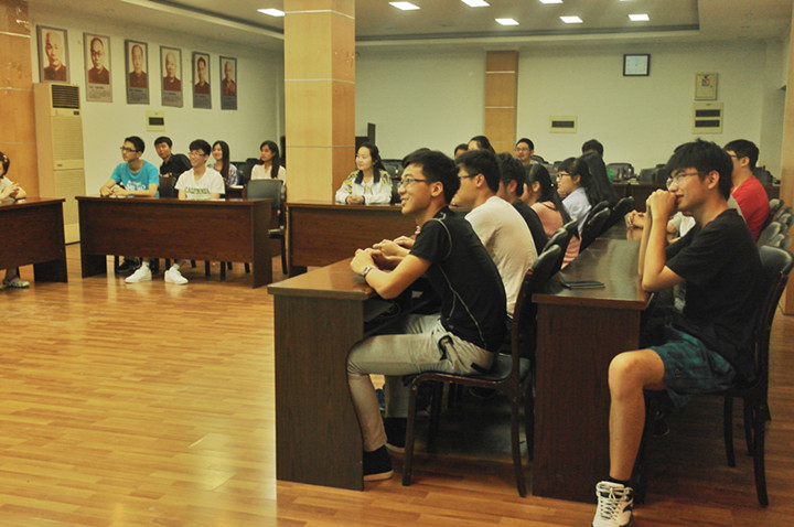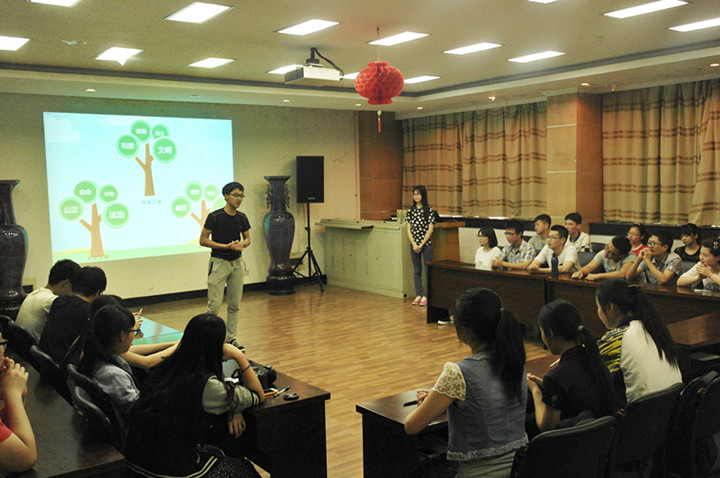 5月22日下午,农学141班在生科楼E1001开展了“跃说·越精彩”的社会主义核心价值观主题班会。学工处教育管理中心施雪钢、外语院辅导员刘方、人文院辅导员曹璇、金融院辅导员陈跃、园艺院辅导员孙笑逸和william威廉亚洲官方辅导员王彬受邀参与了本次主题班会。