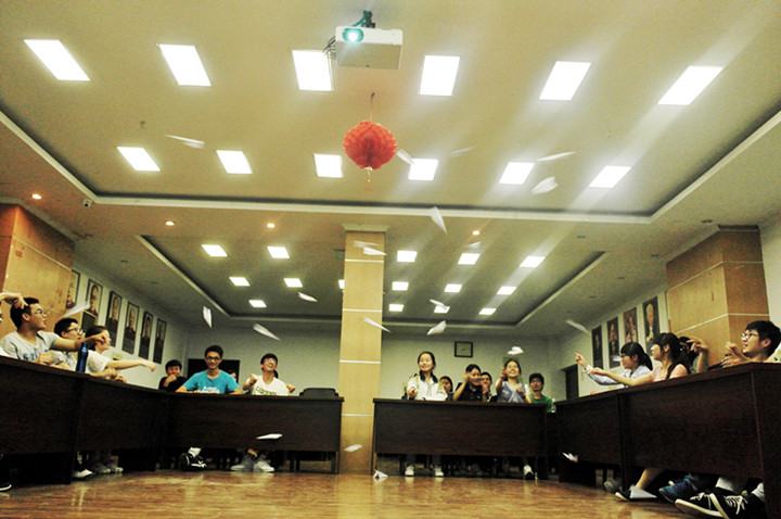 班会分为三个环节。首先由员工回答引入社会主义核心价值观的内容,然后对民主,文明,和谐等12个词进行“拍卖”,拍卖到的小组上前分享对该词的理解和感悟。激烈的拍卖现场,精彩的演说把班会带入一个高潮。紧接着播放了名为《大村姑》的视频,关于女排的励志故事让大家感动不已。最后一个环节,大家按照主持人的要求在纸飞机上写下自己的梦想,放飞纸飞机。纸飞机划出优美的弧线,由主持人分享大家的梦想。