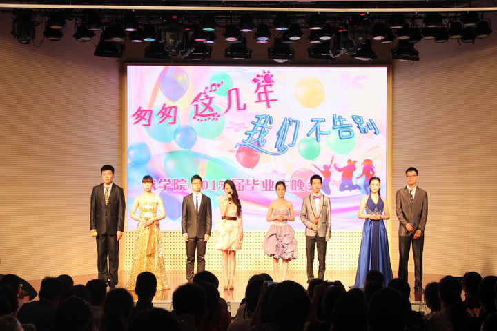 晚会以“匆匆这几年,我们不告别”为主题,分为三个篇章。第一部分“匆匆这几年”。幽默逗趣的小品和节奏欢快的舞蹈迅速带动了现场气氛。台上台下齐欢乐,掌声和欢呼声一阵又一阵。第二部分为“让我为你唱首歌”。2012级团委员工会以一首《光荣》表达了对大四毕业生浓浓的祝福。篮球队特别曲目《倔强》让我们看到了农学人应有的不服输,不放弃的精神。第三部分“我们不告别”。音频设备出了一点小插曲,主持人临时邀请老师们献唱一曲。党委副书记庄森,洪德林教授,彭益全老师接连上台演唱,把晚会变成了真正意义上的师生联欢。随后,一首首的班级大合唱把晚会推向了高潮。温暖熟悉的旋律,真挚感人的歌词让现场不少人洒下泪水。晚会结束后,大家一起合影留念,彼此拥抱、欢呼,把最后的狂欢留在了让人毕生难忘的毕业晚会的舞台上。