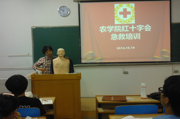 六十余名同学参加本次培训活动,江苏省红会的老师应邀向大家做了专业的急救知识讲座。红会老师就基本急救知识、培养自救和救人能力的重要性以及如何提高自救和救人能力等方面向大家做了重点介绍。讲座中,同学们聚精会神,不时与老师进行互动,表现出了高度的学习激情。之后,大家在老师指导下,模拟急救现场,体验了运用心肺复苏,人工呼吸等方式实施救人的过程。