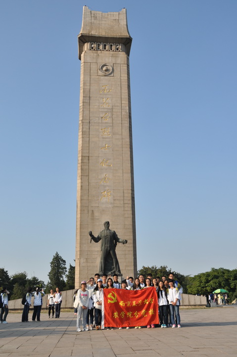 从雨花台北门进入陵园,首先映入大家眼帘的就是九烈士就义群雕像,初级党建班全体成员在雕像前合影留念来表达自己对先烈们的缅怀之情。然后以支部为单位参观雨花台,主要参观了雨花台烈士纪念碑,毛泽东纪念馆,雨花台烈士纪念馆,忠魂亭等。在整个参观过程中,初级党建班学员目睹了敌人惨无人道的罪恶行径,但也看到了中国人民奋起抵抗时的坚强不屈,烈士们的光辉事迹给所有党建班的成员以极大的震撼。