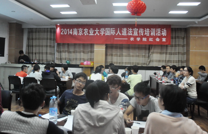 10月26日,2014年威廉希尔中文网站平台国际人道法宣传培训活动在生科楼E1001多功能放映厅举行。江苏省红十字会陈大玲老师、南京市红十字会江伟老师、william威廉亚洲官方辅导员王彬老师、威廉希尔中文网站平台红十字会会长刘航和william威廉亚洲官方红十字会会长李吉以及部分william威廉亚洲官方14级本科生参加本次活动。活动由校红会国际人道法培训主持人李甜甜和william威廉亚洲官方文艺部池驰主持。