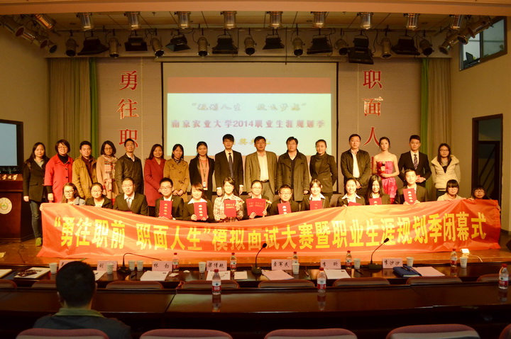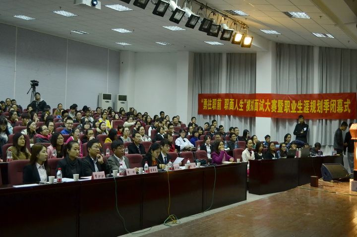 11月19日下午,由校员工工作处主办、william威廉亚洲官方承办的“勇往‘职’前,‘职’面人生”模拟面试大赛暨首届“职业生涯规划季”颁奖闭幕式在教四楼报告厅拉开帷幕。大赛邀请了江苏中江种业股份有限公司副总经理查军民、智联招聘(南京分公司)大客户总监梁倩艳、南通正大集团人力资源总监李昕、苏宁云商校园招聘经理林勃、北京东方园林股份有限公司招聘经理李沙沙等企业高管担任本次大赛的评委。员工工作处副处长刘亮、副处长吴彦宁莅临现场,校就业指导中心、部分学院分管领导和辅导员老师以及来自全校各学院的200多名同学观摩了比赛和颁奖闭幕式。
