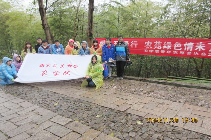 烟雨朦胧中,一行人兴致勃勃地来到紫金山脚下,分成了三个小组,各组扮演着不同的角色。 A小组的志愿者向过往的游客们发传单,向他们耐心地解释此次活动主题及内容,游客们也纷纷被志愿者们的环保意识所打动,积极参与到活动中;B小组的志愿者引领他们在横幅前签名留念,为感谢游客们的大力支持,志愿者们同时为他们献上了精美小礼品;C小组的志愿者不畏艰辛,沿着紫金山一路前行,清理路边的垃圾,赢得了路人一片赞许的目光。