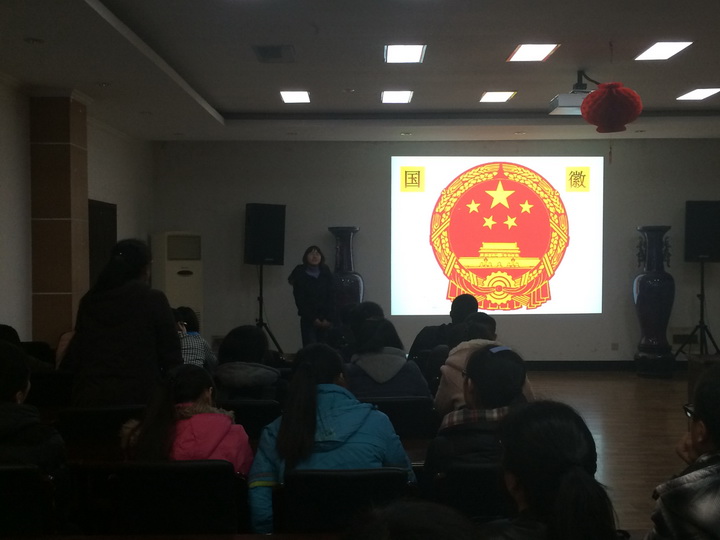 同学们认真的观看电影,了解了国徽的意义及其由来。在电影中看到了60多年前人们对新中国的理解和希望,党的领导、工农联盟、人民团结,以及民主、科学、繁荣、富强。这就是60多年来中国人的“中国梦”,对于今天的我们仍具有重要的意义。