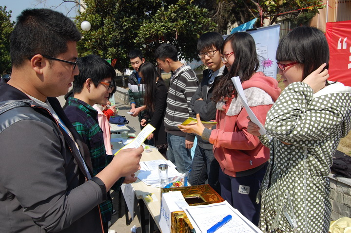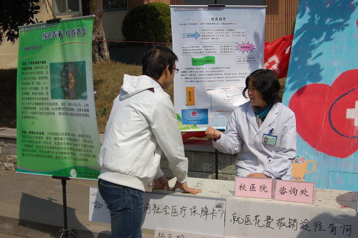 活动现场,展板上展示的是春季多发流行疾病和科学睡眠相关知识及具体案例,引得路过的师生频频驻足观看学习,并有校医院工作人员为大家解答关于校医院和疾病知识的疑惑。在“和你道晚安”活动版块,参与者活动前在箱子里留下自己的号码,活动当天在箱子里随机抽取号码互道晚安;在“大声说我要睡觉”版块,工作人员准备了白板邀请来往的同学手举“我要XX点睡觉!”白板照相,后期将洗出照片摆放于玉兰路,以示提醒;在互动环节,有“健康知识知多少”知识竞答和医务用品“找你妹”及“扎坏蛋”趣味小游戏,生动的体现了活动主题,来往同学们参与积极热烈,气氛活跃。