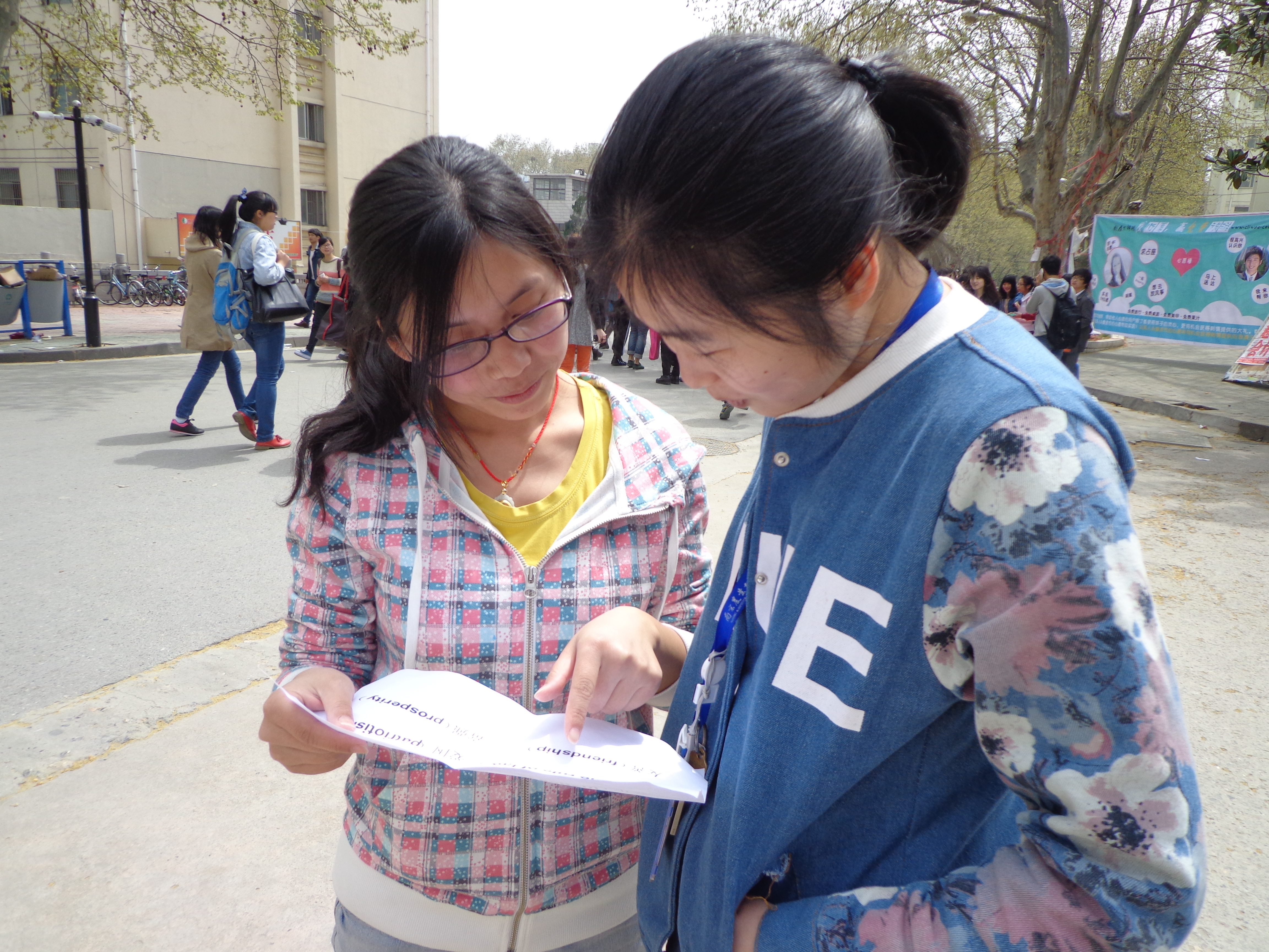 3月31日中午11点,william威廉亚洲官方种子二支部在玉兰路举办主题英文单词普及活动,成员们手持印有“社会主义核心价值观”内容的英文词汇向路过的同学们教授,这些词汇包括富强(prosperity)、民主(democracy)、文明(civility)、和谐(harmony),自由(freedom)等,大家积极主动,把这些核心词汇的读音和含义普及给大家,并传递了社会主义核心价值观的内涵和意义,使大家更熟悉社会主义核心价值观的内容,更关注时事。