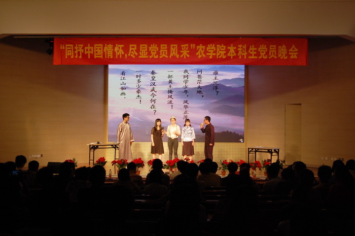 晚会开始,各支部的风采展示和排练花絮展现了各支部对于此次党员晚会的用心投入。由农学一、二支部带来的话剧《袁隆平》展示了袁隆平的农业梦想。植物实验专业支部和植物实验131班排演的《第一书记》及农学三、四支部带来的《村官那些事儿》带我们领略了老员工村官的新面貌真风采。种子一、二支部带来的《恰同学少年》带领观众们回到那段峥嵘岁月,体会同学少年的风华正茂、挥斥方遒。还有由大一同学带来的《琴棋书画》表演中国风洋溢、美轮美奂。人影戏《星火之路》创意独特、叹为观止。合唱与诗朗诵《我的祖国》壮志豪迈、深情满满。每个节目都经过了精心准备,各有特色。