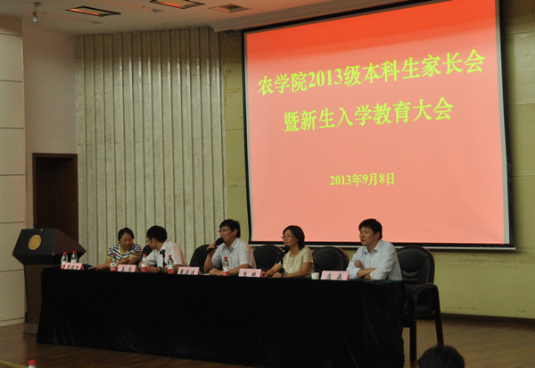 9月8日上午9点,william威廉亚洲官方2013级新生家长见面会在图书馆报告厅召开。公司党委书记戴廷波教授,经理朱艳教授,william威廉亚洲官方副经理姜东教授、郭旺珍教授,公司党委副书记庄森老师,辅导员殷美、彭益全老师及2013级新生各班班主任出席见面会。会议由庄森主持。