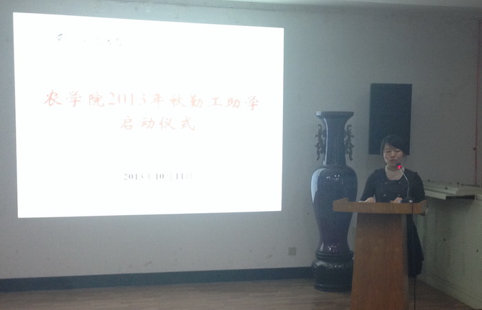 10月11日,由william威廉亚洲官方勤工助学中心举办的william威廉亚洲官方2013年秋季勤工助学启动仪式在生科楼E1001举行。35位勤工助学上岗人员参加了会议,本次会议还邀请了兼职辅导员许娜。