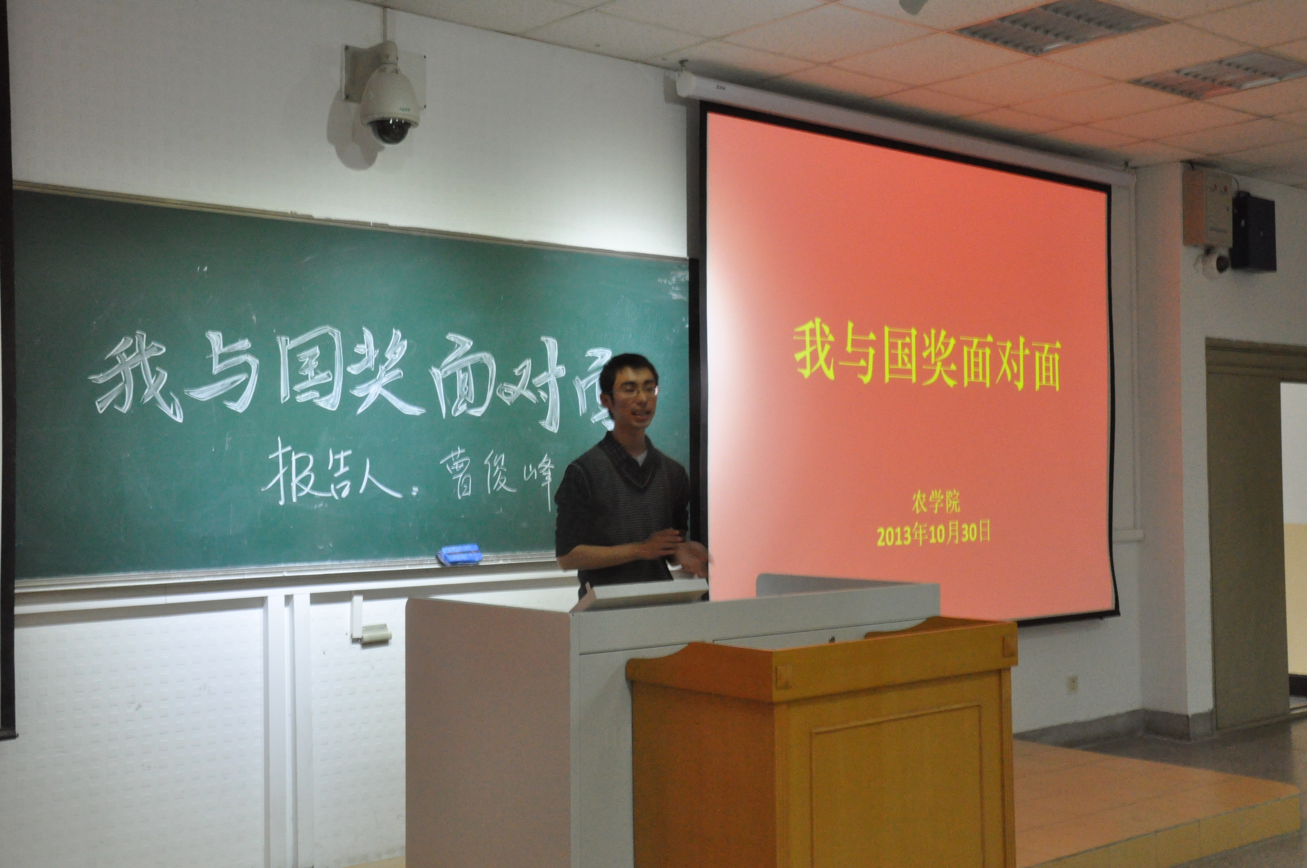 在大家的热烈掌声里,此次贴近同学们生活学习的报告圆满结束。虽然报告时间不长,但是起到的作用和得到的反响很大,帮助了大一的同学们更清楚的看清了自己的学习情况和努力改进的方向,真正起到了“与国奖面对面,生活学习点对点”的作用。