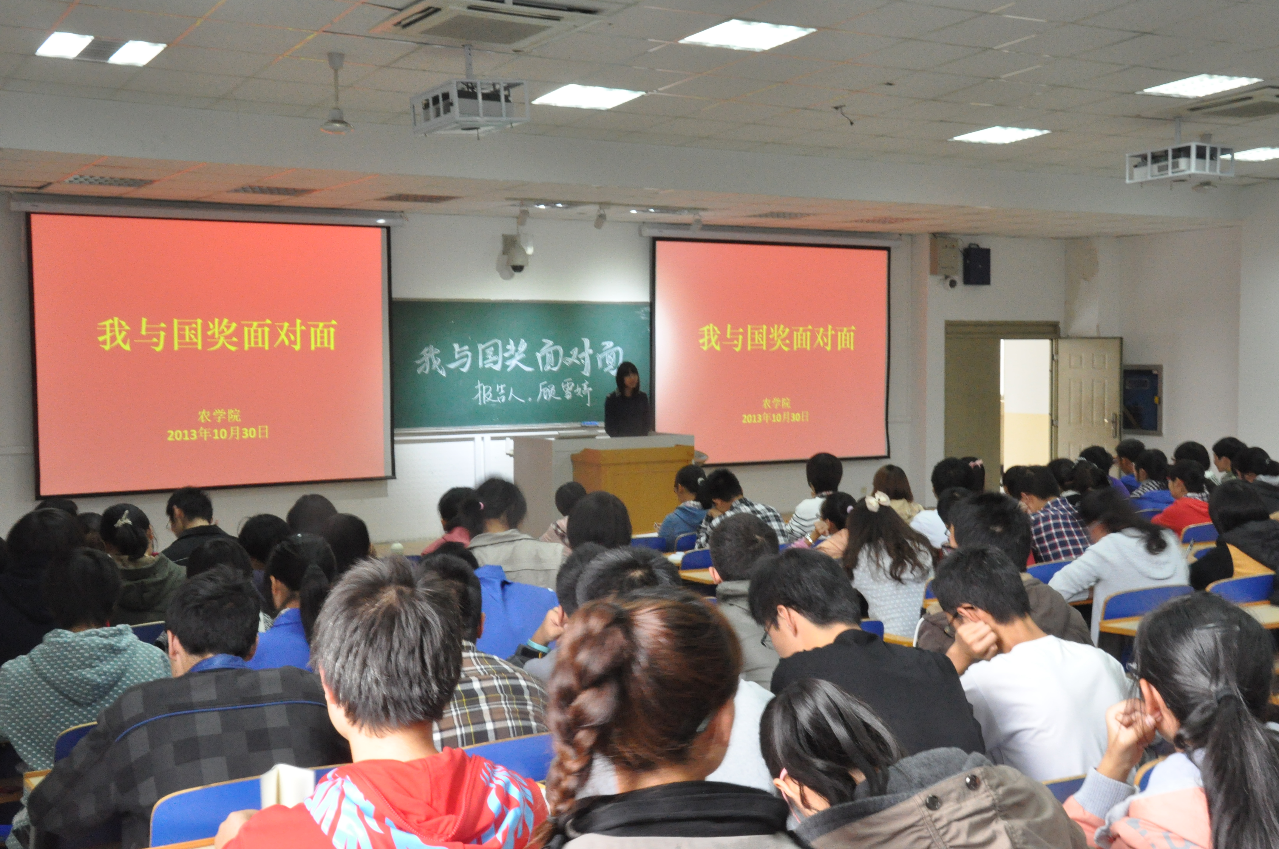 10月30日星期三下午,由william威廉亚洲官方团委员工会主办、学习部承办的主题为“我与国奖面对面”主题报告会于教学楼C301举办,这次报告作为一次别开生面的形势与政策课,令大一的同学们都很期待。学习部邀请了今年获得国家奖学金的五位同学为同学们作关于个人学习经验的报告,分别是植物实验111班曹俊峰、农学113班孙彦、农学114班朱星洁、种子112班李霄和植物实验121班顾雪婷。出席的有william威廉亚洲官方大一同学及辅导员彭益全。