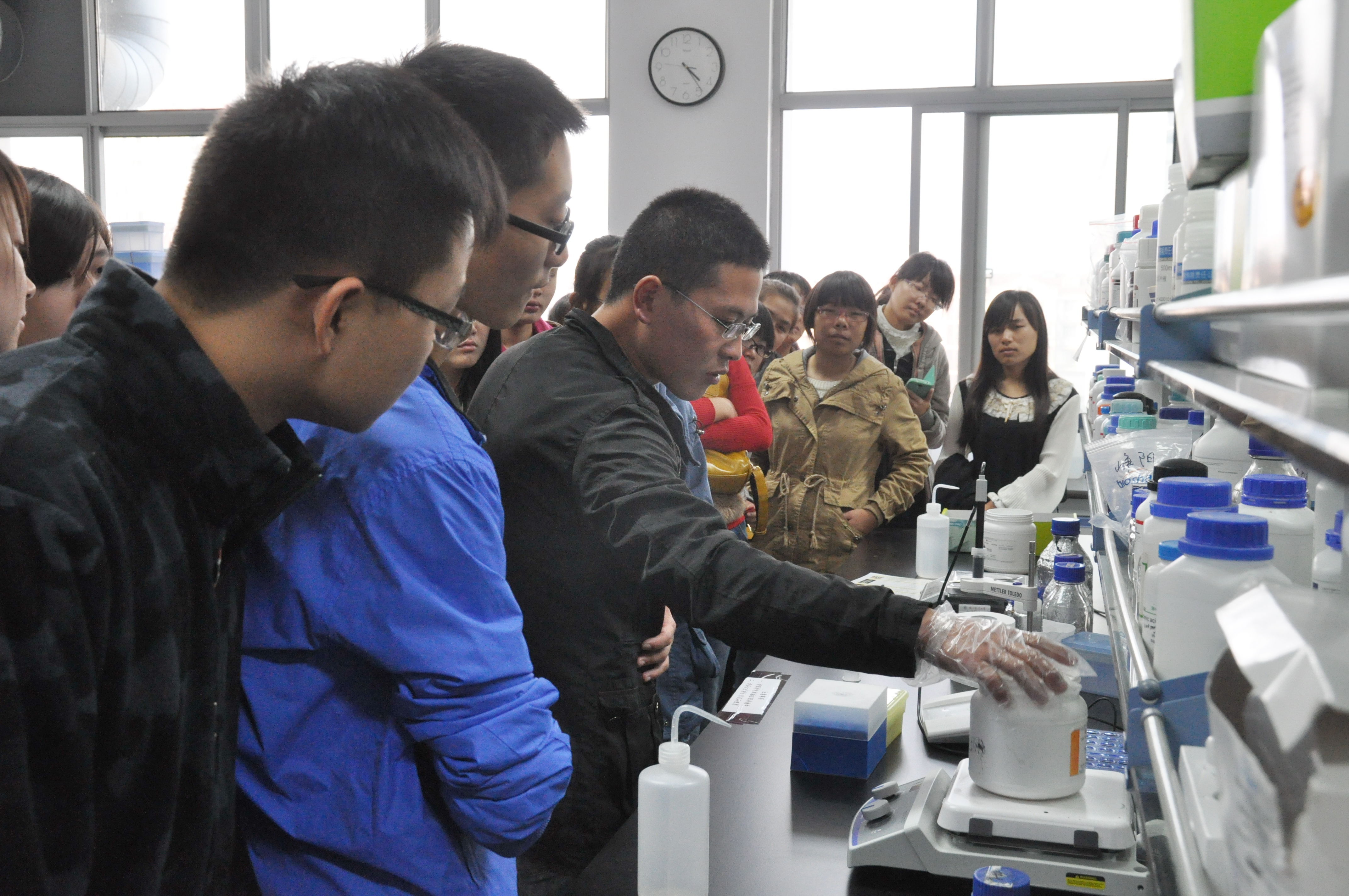 在实验室里,大家看到了丰硕的研究成果和研究人员的工作环境,看到了课本上才能见到的高科技仪器,开拓了同学们的眼界,启迪了同学们的科研志向,也让同学们深深体会到科研创新的不容易。
