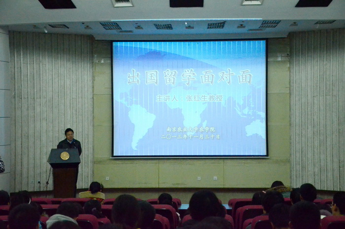 首先,庄森简单的介绍了张红生教授。讲座开始,张红生教授介绍了中国在世界上所处的地位,中国由闭关锁国到改革开放,经济实力不断提升,但在科技、军事等方面还有不足,而国家现代化建设需要更多国际化人才。建设世界一流大学是学校的发展目标,而学校人才培养的国际化具有必要性,他鼓励更多人走出国门,去扩展国际化视野与提高跨文化交流能力。随后,他分析了各国际学校项目的优点,对交换生名额的情况、项目培养计划与模式做了详细的介绍。然而,如何实现出国?张红生教授提出,语言关、优秀的成绩和良好的人生职业规划是关键,提前准备是成功的必要。