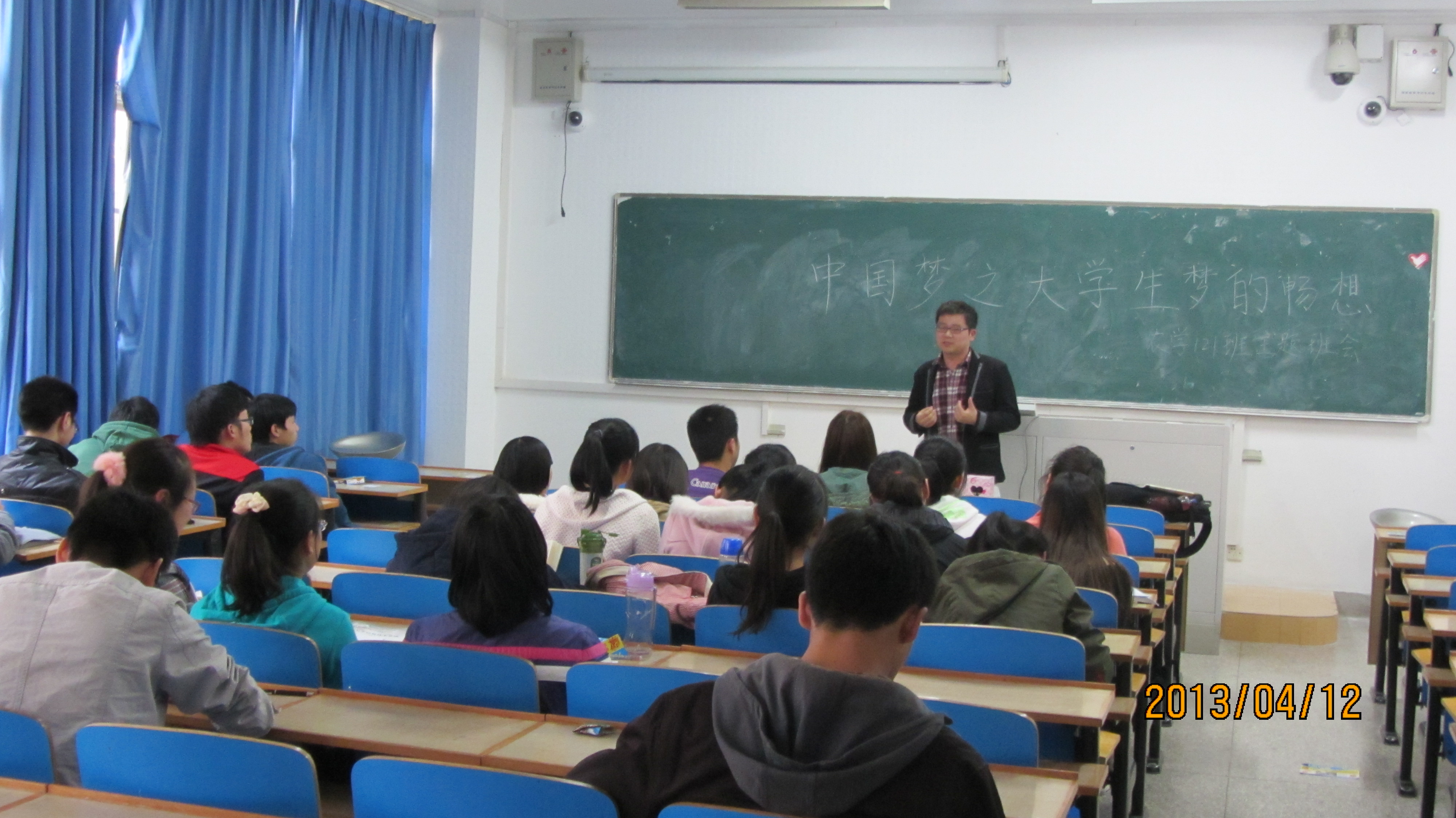 2013年4月12号下午,农学121班团支部在教学楼B102开展了 “中国梦·梦青春之老员工梦想的畅想”主题班会。