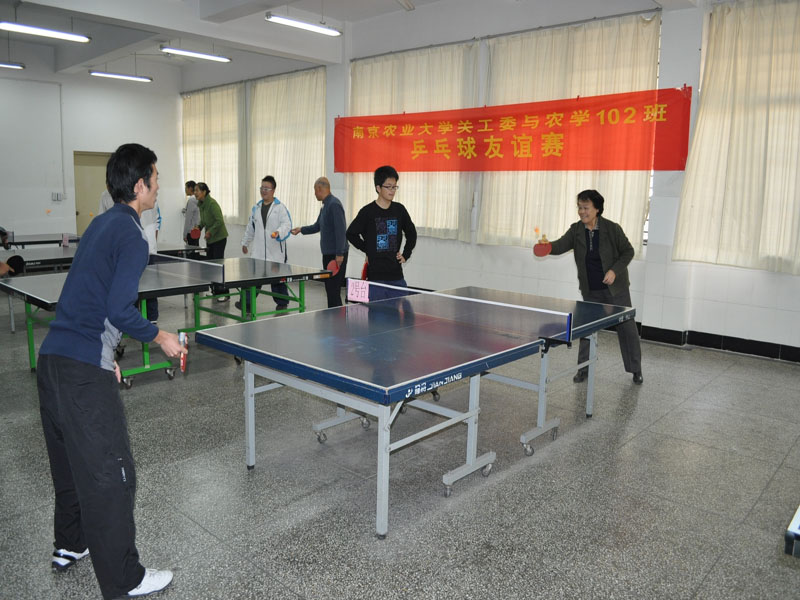 这次的乒乓球友谊赛共分两部分:第一部分为团体比赛,由农学102员工队对阵关工委老同志队;第二部分为个人比赛,参加运动员均为农学102班的同学。
