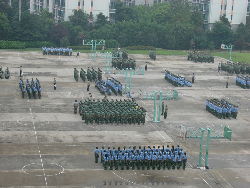 8月28日上午7点40分,公司本部09级全体本科生以学院为单位准时在校体育场集合,标志着09级军训正式开始。