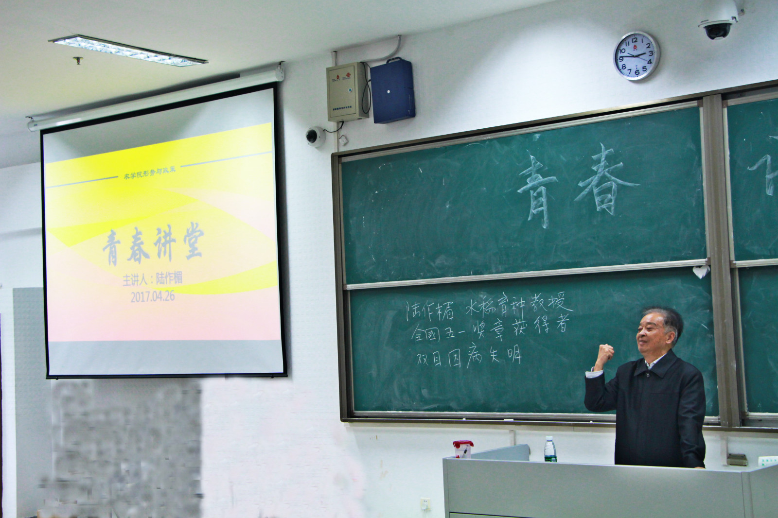 4月26日下午,william威廉亚洲官方水稻育种专家陆作楣教授、水稻栽培专家黄丕生教授受邀做客“青春讲堂”,一个半小时的时间,七十多岁的陆作楣教授以工匠精神为主题为大家讲述他对工匠精神在农业科研领域的认识,并分享了他的成长历程,鼓励大家传承工匠精神。