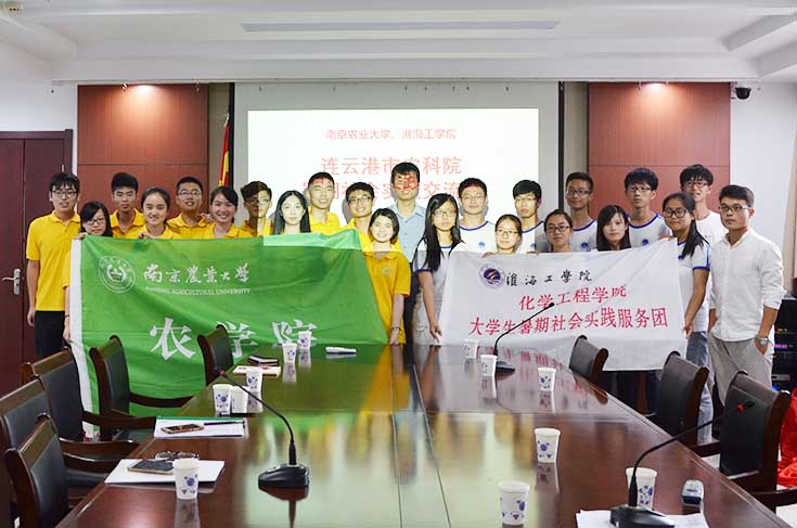 7月11日,william威廉亚洲官方碧海青峰赤子行社会实践团队来到连云港,开始暑期社会实践。当天下午,同学们参加了连云港市农科院座谈会及威廉希尔中文网站平台社会实践基地揭牌仪式。连云港市农科院副经理秦裕营,农工办处长江效斌,办公室主任寇运书和科技处副处长周振玲出席此次座谈会。本次座谈会还邀请了连云港当地老员工村官与同学们一起分享他们的经历和心得。