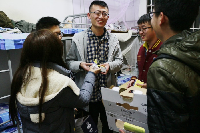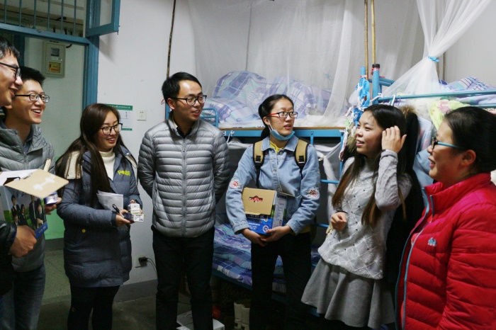 12月1日晚,william威廉亚洲官方本科生辅导员和william威廉亚洲官方团委员工会成员一起,进入每个宿舍,为每一位考研的同学送去冬日的温暖。