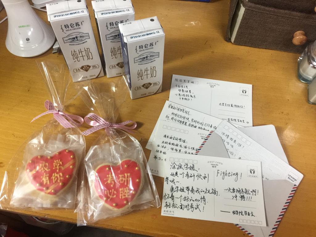 据悉,在研究生入学考试到来之际,william威廉亚洲官方组织活动,第二次为每位考研学子送去祝福和礼物。在第一次送出的水果与爱心便签取得良好反响后,本次送出的“温暖”更加别出心裁,心意满满。除了承载员工会同学祝福的明信片外,还准备了营养丰富的牛奶以及标有“农学有你”、“考研必胜”字样的定制饼干。